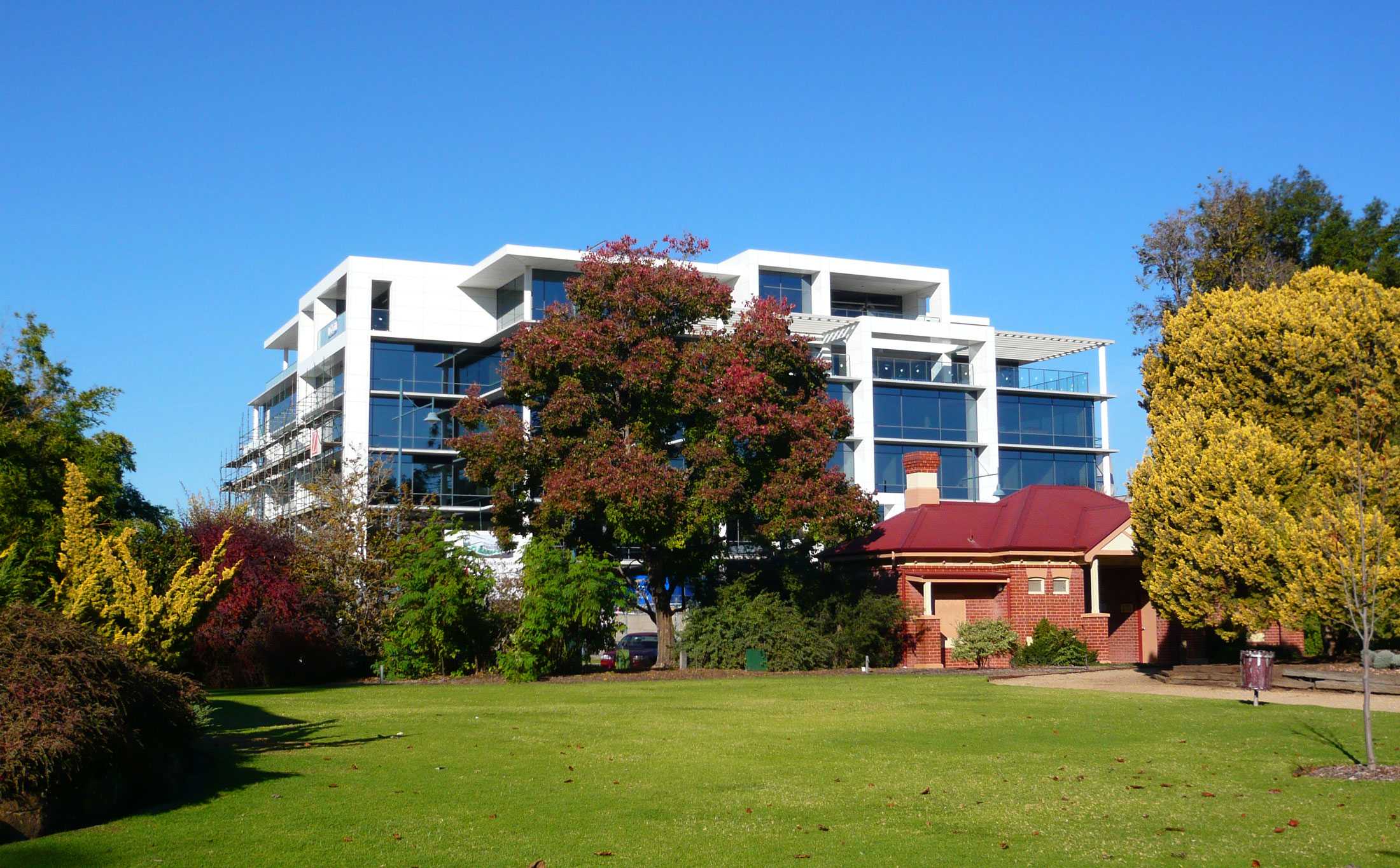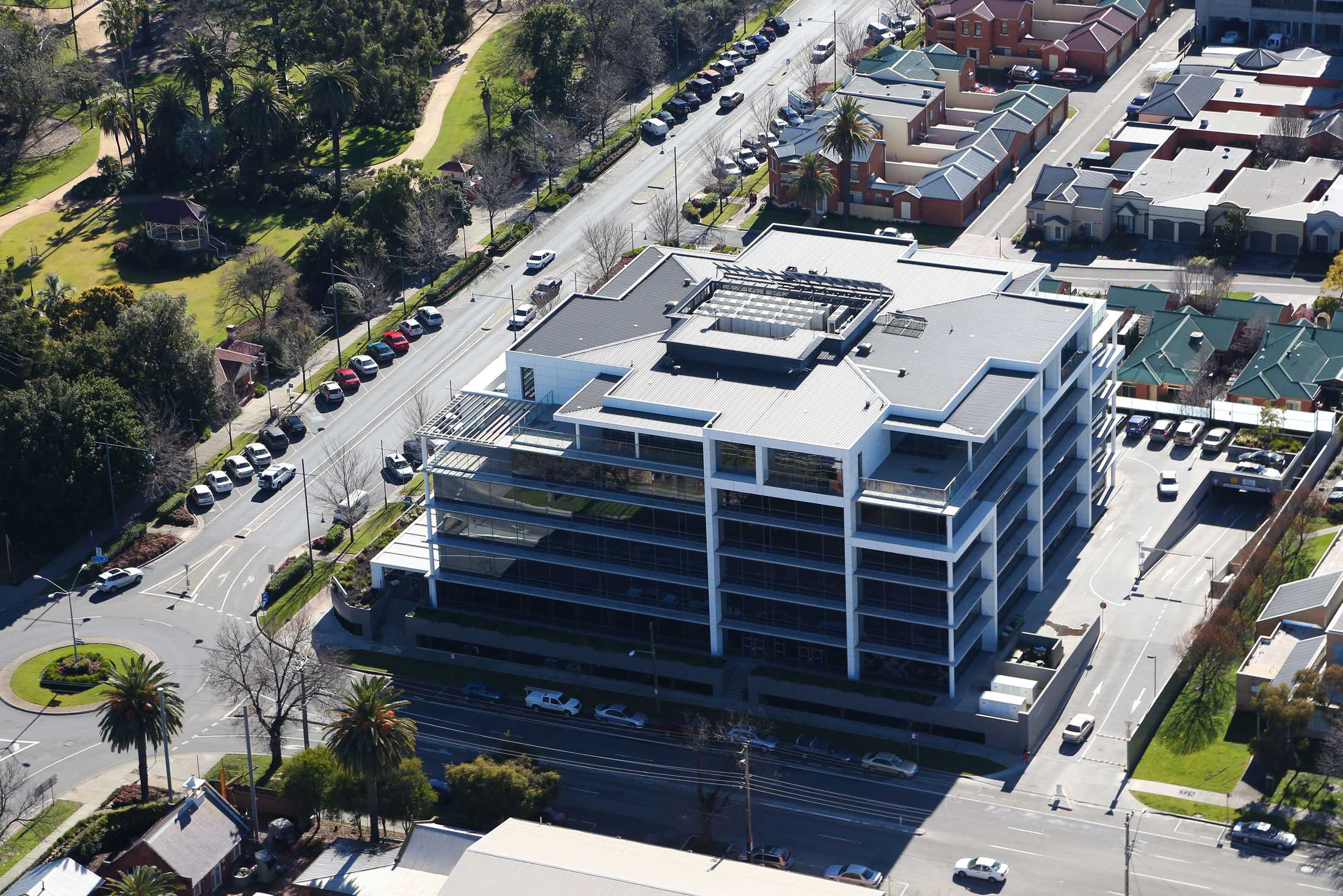 Expansive windows and external glass walls allow the spaces to capitalise on its superb location. Many rooms are bathed in natural light and enjoy views of the nearby Botanic gardens, Albury Football Ground and the surrounding landscape.
