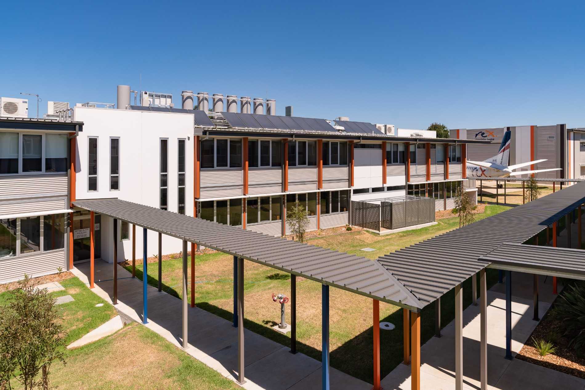 The first Airline Pilot Training Academy in the Asia Pacific region, the REX pilot training academy in Wagga Wagga NSW includes a hangar for aircraft used in training, a simulator centre, two-storey accommodation facilities connected by covered walkways to the extensive amenities.
