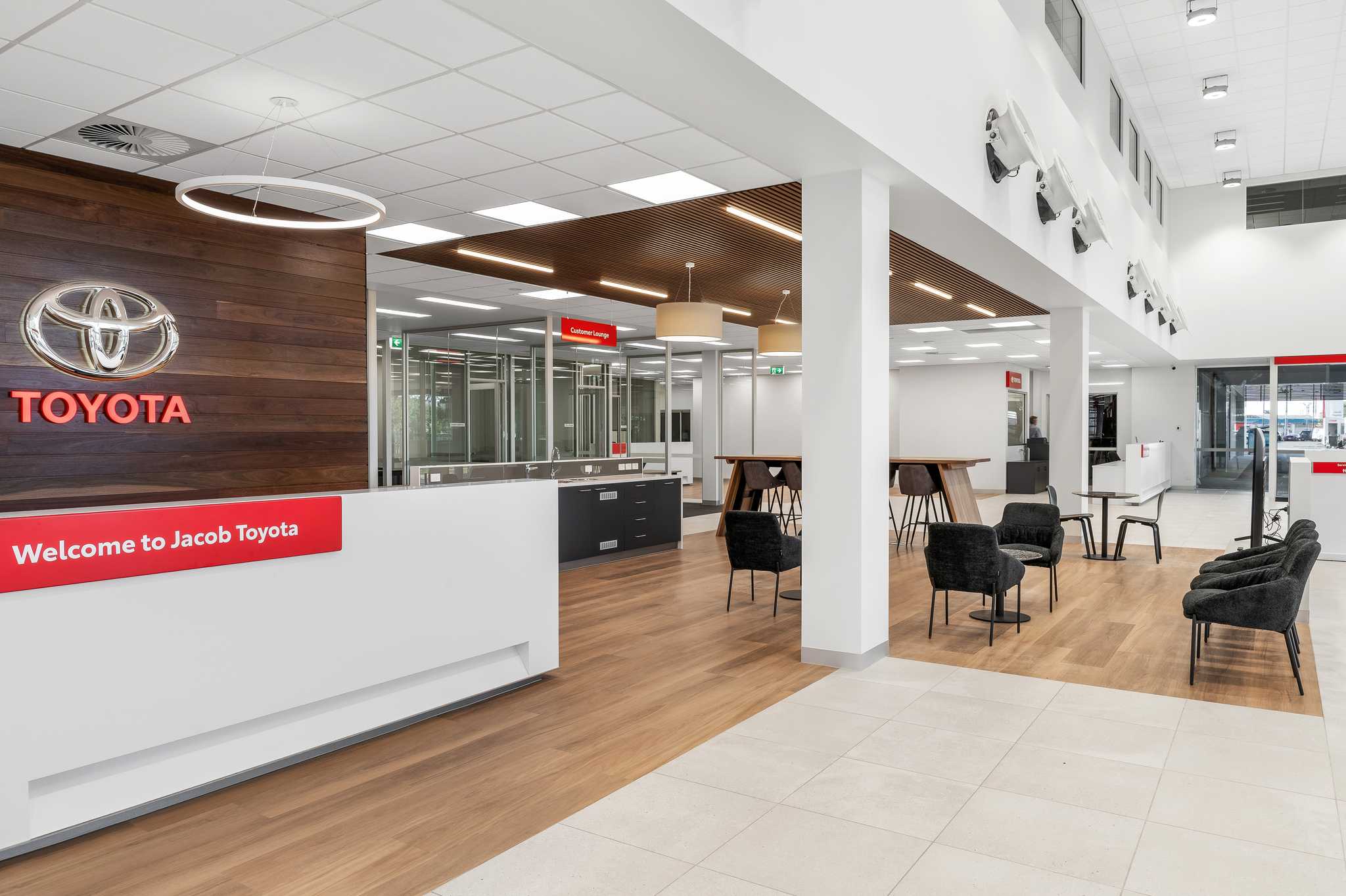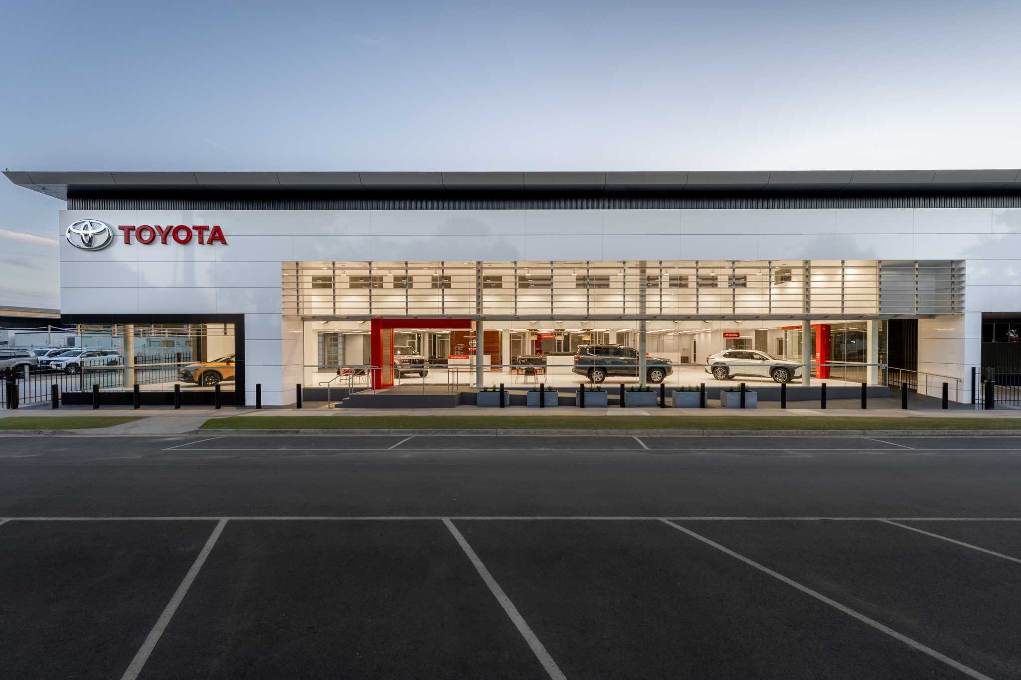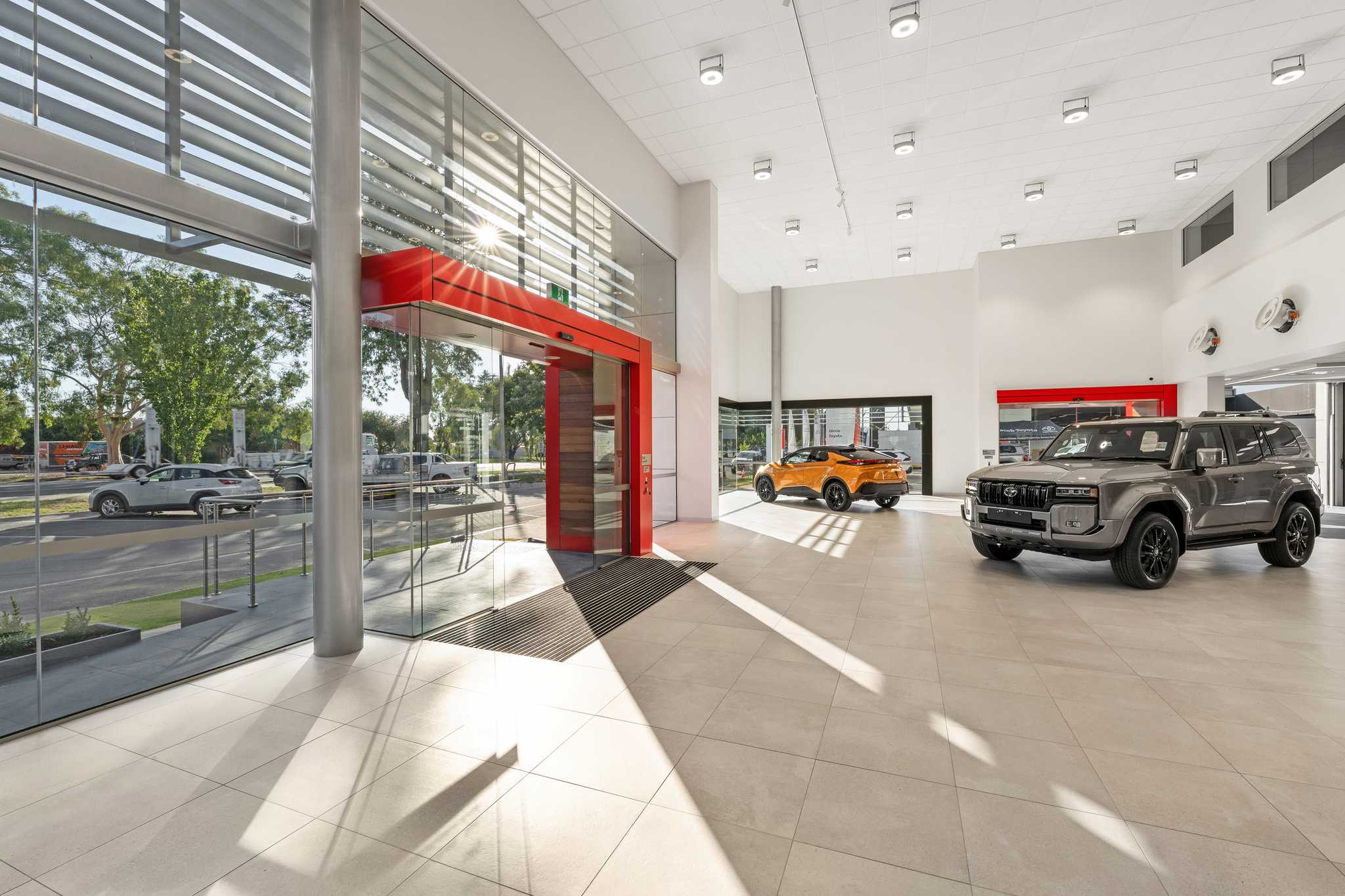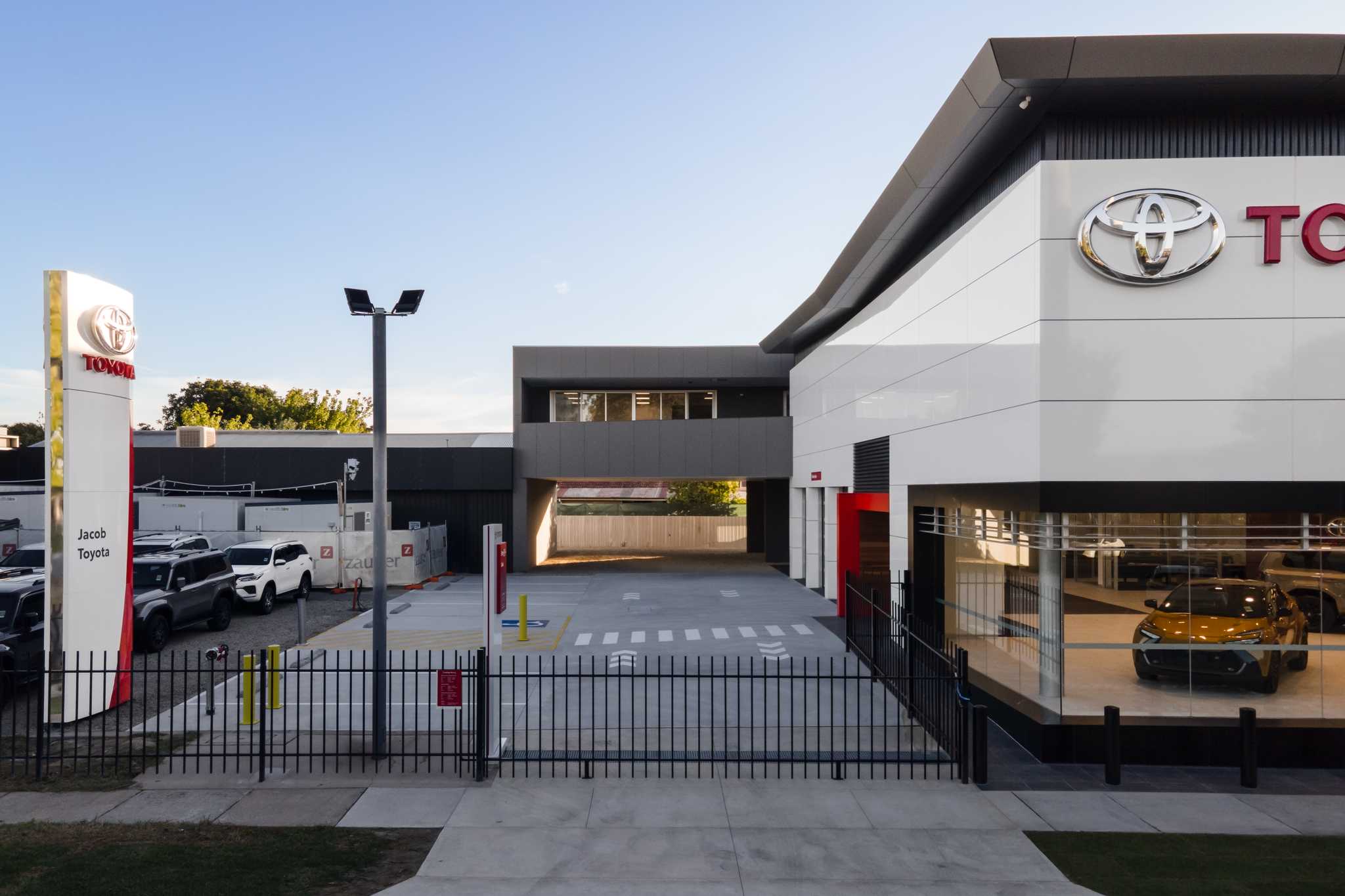 The Jacob Toyota redevelopment involved partial demolition of the existing showroom and administration offices and the construction of a new two-storey showroom as well as refurbishment of the existing back of house areas and tying into the adjacent existing workshop.