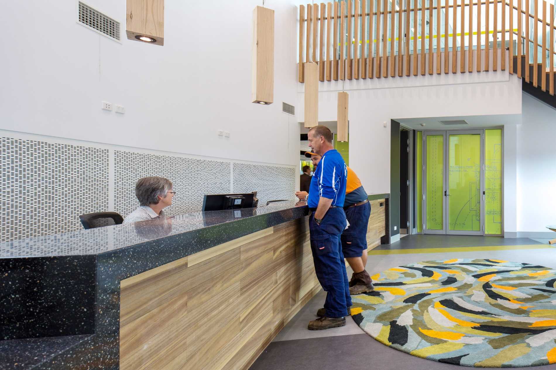 Bringing North East Water’s operations together from 3 locations to one, the Regional Headquarters includes a suspended slab first floor open to the interior garden in the main entry below. Polished concrete throughout brings together the natural elements for a client with high value on environment sustainability.