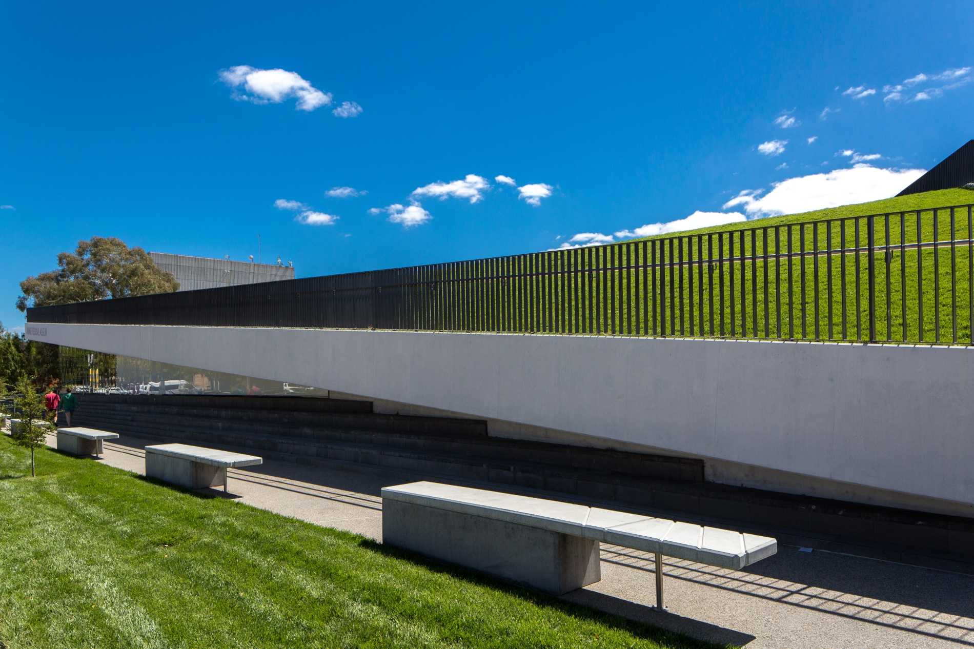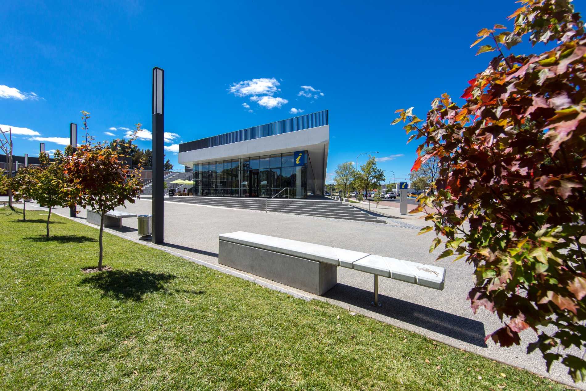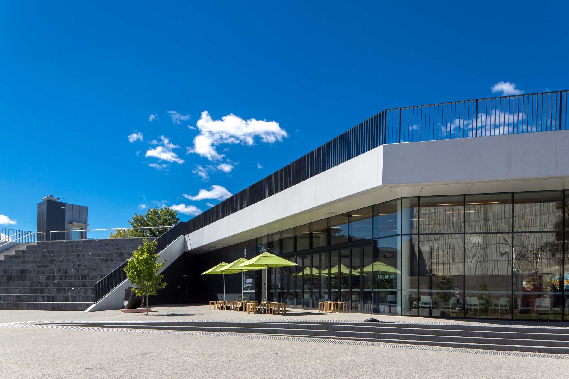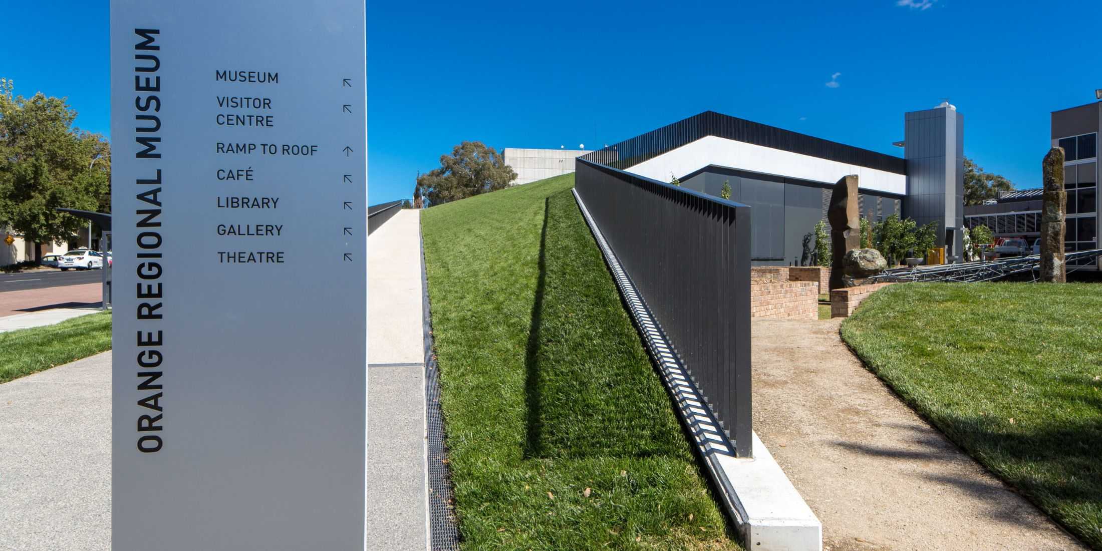 To build is to ‘come up out of the ground’ – and in the case of Orange Regional Museum we’ve lifted the ground above, maintain the greenspace above – providing amphitheatre seating and access to the lawn above – the roof of this museum is fully accessible and literally the ground above.