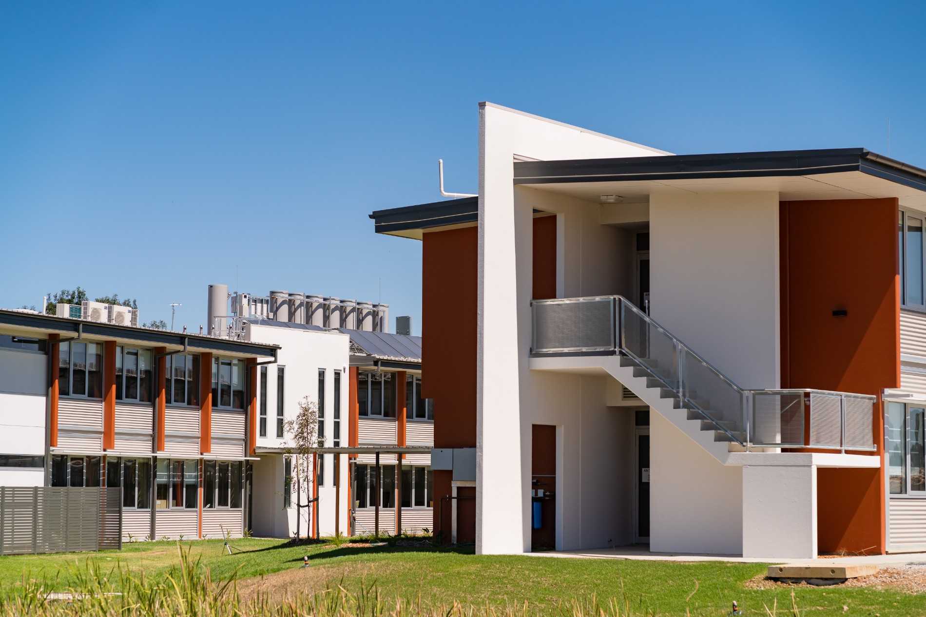 A 25 metre lap pool, sports field, basketball court, library and gym are included along with the individual bedrooms and training facilities make this is a full-service academy. Ensuring compliance with both Australian (CASA) and European (EASA) standards for education and examination was factored into the delivery of this project.